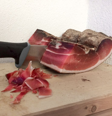 Nel Caseificio Oberhof il prodotto secondario della produzione di formaggio, il siero, è foraggiato ai maiali per un ingrassamento lento e sano senza concime. Così si possono alimentare proteine che non sono usati nella produzione del formaggio. Il Caseificio Oberhof si è dato il compito di produrre nel segno della sostenibilità, dell'antinquinamento e dell'alta qualità. Vendiamo speck del contadino, pancetta, coppa e salamini affumicati.